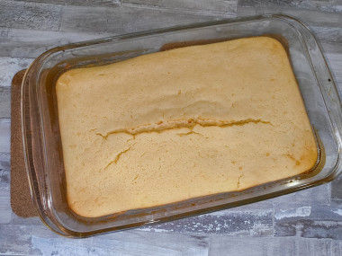 Подготовьте форму для выпечки пирога, я взяла керамическую форму 20 х 20 см. Смажьте форму растительным масло со всех сторон и присыпьте мукой, остатки стряхните. Вылейте тесто в форму и поставьте в предварительно разогретую духовку на 30 - 35 минут, готовность проверьте деревянной шпажкой - она должна выйти сухой из середины пирога. Точное время зависит от особенностей вашей духовки.