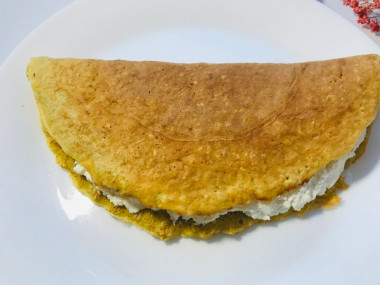 Я уже несколько раз готовила овсяноблин по разным рецептам. Этот вариант мне понравился больше всего. Сам блинчик оказался даже вкуснее начинки, что удивительно для меня. Овсянка у меня была быстрого приготовления, я ее немного перемолола в блендере. Совсем мука не получилась, но хлопья стали значительно мельче. Тесто замесилось очень быстро. Блинчик пожарила на широкой сковороде, в процессе выпекания он стал пышным и пористым. Перевернулся без проблем. Для начинки взяла манго, для абрикосов сейчас не сезон. Зернистого творога не было, но был в виде пасты в стаканчике. Потом поняла, что надо было дождаться полного остывания блина, от тепла мой творог стал немного жидким. На вкус это не повлияло) Овсяноблин получился большим и очень сытным, я осилила только половину. Блинчик вкусный, нежный, мягкий, овсянка не чувствуется. Фруктовая начинка отлично дополняет блинчик, а мягкий творог стал вместо соуса) Зернистый творог, думаю, тоже желательно класть на остывшую поверхность, чтобы не появилась кислинка. Овсяноблин мне очень понравился, теперь буду использовать эту основу. Спасибо большое за рецепт!