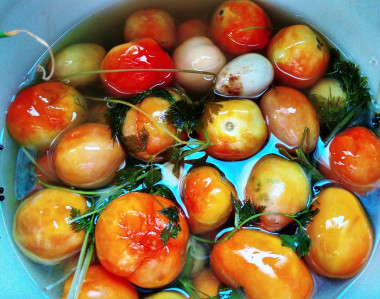 Чем дольше помидоры настаиваются, тем вкуснее они получаются! Обязательно попробуйте и насладитесь тем самым вкусом, который многим знаком с самого  детства!