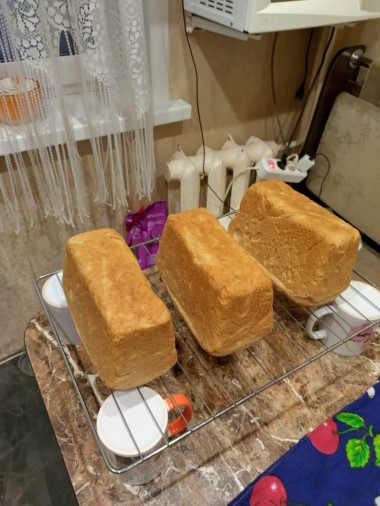 Мои недочеты - муки в следующий раз возьму немного меньше. У меня тесто получилось из указанного количества густое, месить руками было тяжеловато. Но это не вина автора, а мой промах, не надо было сразу всю муку вмешивать. Но несмотря на это хлеб получился очень вкусным! От себя - смазала сверху сиропом и посыпала кунжутом (ну любим мы его). Рецепт рекомендую, только надо быть осторожным с мукой, в разных регионах она разная.