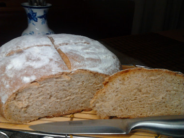 Раньше я выпекала хлеб довольно часто, но в основном в хлебопечке, но потом кулинарные интересы сместились в область сладкой выпечки. А тут вдруг серый хлеб, который ест мой муж, пропал у нас из продажи. Рецепт серого хлеба в духовке оказался простым и доступным. Тесто получилось очень приятное на ощупь, мягкое, совсем немного липковатое. Хлеб вкусный, ароматный и очень домашний. Горячий хлеб я смазала водой и укутала в полотенце до полного остывания. Замечательный рецепт, спасибо!