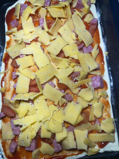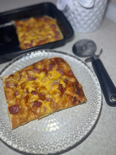 Обычно делаю пиццу на дрожжевом тесте, но сегодня нужно было быстро приготовить что-нибудь вкусненькое на перекус, поэтому выбрала этот рецепт.