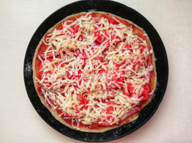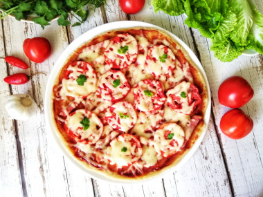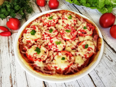 Пиццу у нас любят и взрослые, и дети. Так понравилось тесто по рецепту Кристины, что мне захотелось с ним приготовить пиццу. Пицца получилась очень вкусная, с сочной начинкой и хрустящими краями, вообщем все как я люблю.