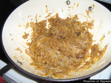 Добавляем к капусте репчатый лук и морковь, обжариваем до золотистого цвета.