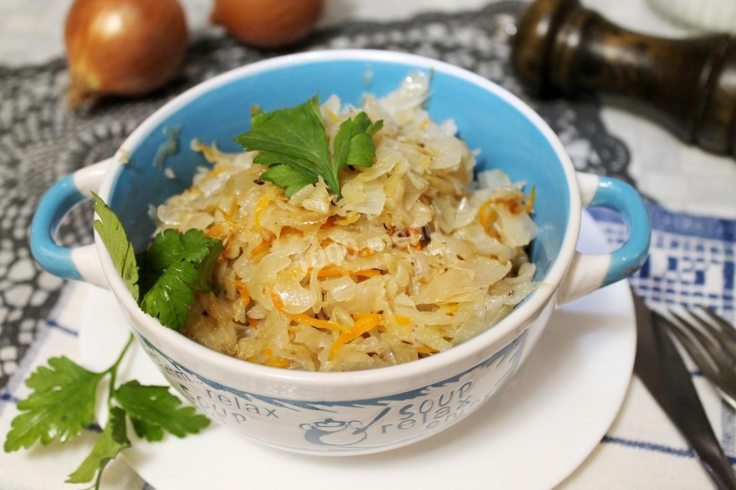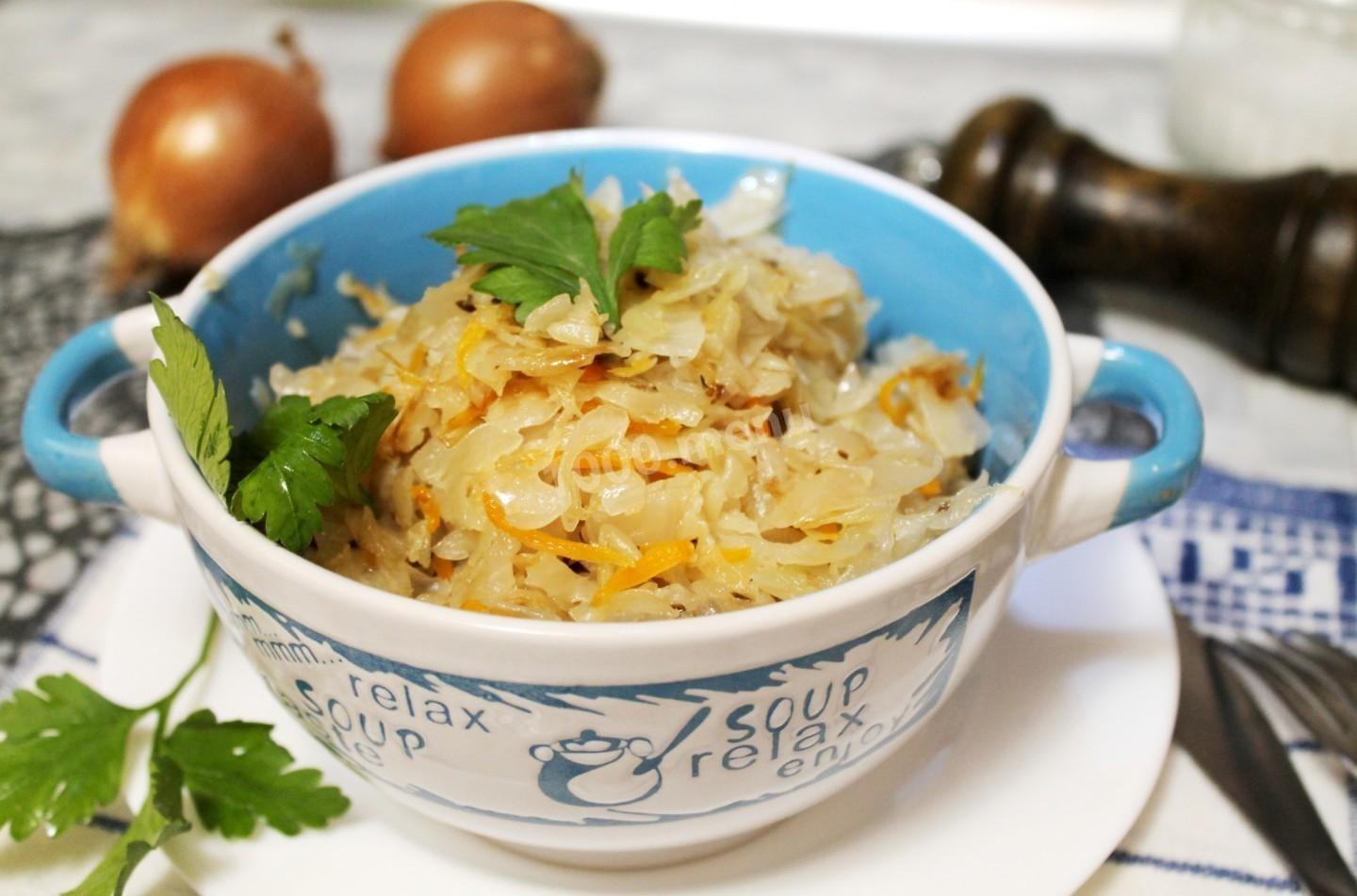 Очень простой и распространенный рецепт с квашеной капустой. Действительно, жареная квашеная капуста - это и гарнир к мясу или рыбе, составляющая в солянку, особенно в рыбную - по старинным рецептам (тогда ее называли селянкой), а уж какие замечательные пирожки получаются с начинкой из поджаренной капусты! Лук придает блюду вкусовую завершенность.