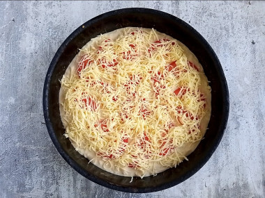 Сверху посыпьте пирог оставшимся сыром.