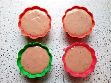 Используйте формы для маффинов и кексов, подходящие для микроволновой печи. Силиконовые формы смазывать не нужно, у форм из другого материала смажьте маслом дно и бока. Заполняйте их на 3/4, чтобы оставить место для подъема теста. Поставьте в микроволновку на 2,5-3 минуты при мощности 800 Вт. Время и мощность могут измениться в зависимости от особенностей вашей микроволновки. Читайте об этом в статье про микроволновки, ссылка в конце рецепта.
