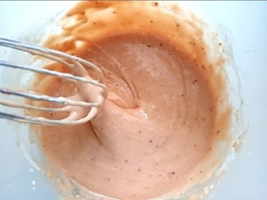Тесто должно получиться как густая сметана. Добавьте разрыхлитель и тщательно перемешайте. О тонкостях работы с разрыхлителем читайте в статье по ссылке в конце рецепта.