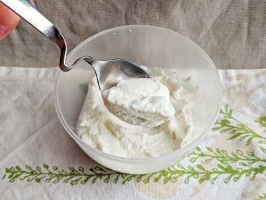 С 1 л молока у меня получилось смешные 92 г сыра. Сыр-то вкусный, нежный, почти не солёный, хорошо мажется, но совсем мало(((