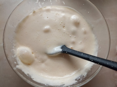 Добавьте белки в желтки и аккуратно перемешайте их, стараясь не осадить воздушную массу.