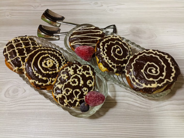 Решила испечь пирожное Буше. С помощью миксера замесила тесто, выложила его ложкой небольшими кружочками на противень, застеленный пергаментом (пользуюсь силиконизированным). Выпекала до готовности. После остывания, бисквитные лепешечки смазала кремом и попарно соединила ( для крема вместо сливок использовала сметану, взбитую с сахарной пудрой). Украсила растопленным черным шоколадом и узором из растопленного белого шоколада. Пирожные очень вкусные: остывший шоколад образовал верхний хрустящий слой, под которым нежный, пропитанный сметанным кремом бисквит. Спасибо автору за рецепт!