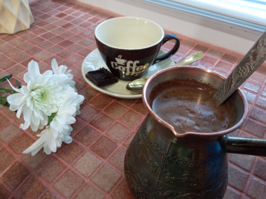 Признаюсь вам честно, я большая любительница кофе и всевозможной еды из него, а настоящий кофе по-турецки активно (активно – это значит не меньше пяти чашек в день) пью с четырнадцатилетнего возраста. Самое важное в данной разновидности кофе – это густая, устойчивая пена, которая сохраняется даже тогда, когда кофе довольно долго стоит на столе без вашего внимания. Кроме того, имеется еще один важный секрет: никогда не варите кофе больше, чем на две чашечки одновременно, иначе у вас получится все, что угодно, но только не кофе турецкой кухни.