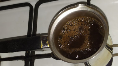 Ставим на плиту, ждем, пока кофе подогреется. Как только жидкость будет готова закипеть, кидаем в нее крупинку соли (это нужно для образования пенки), размешиваем и держим до тех пор, пока кофе не соберется «ползти» по стенкам джезвы. Тут же снимаем и наливаем в чашечку (маленькую, кофейную, не чайную и не для растворимого кофе!).