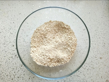 Возьмите глубокую миску и добавьте в неё нужное количество сахара, корицы и овсяных хлопьев. Яйцо вбейте в миску. Перемешайте ингредиенты вилкой до однородности. С выбором овсяных хлопьев поможет статье по ссылке в конце рецепта.
