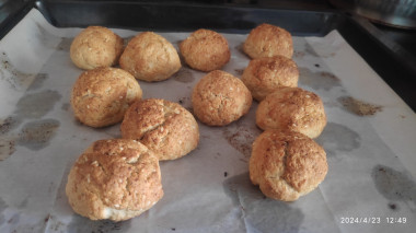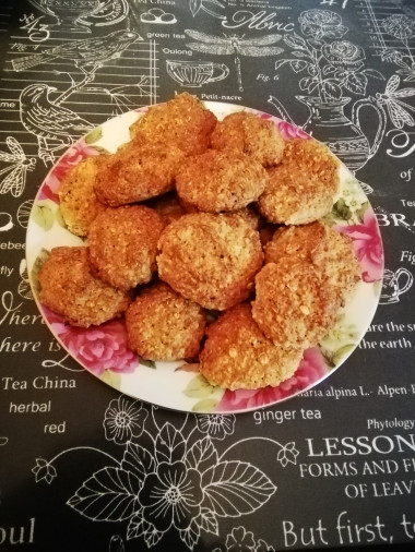 Перемешала, получилось мягкое, слегка липкое тесто. Руками, смоченными водой, сформировала печенье,выложила на противень и запекала в духовке 20 минут при 180°.