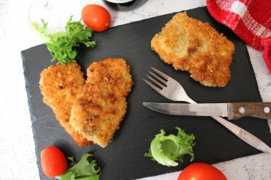 Выложить готовые отбивные на бумажное полотенце, чтобы дать лишнему жиру впитаться. Разрезать на полоски и подавать с любым гарниром.