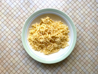 Сыр для этого кляра нужен с острым, ярко выраженным вкусом, так как от кляра, в основном, и будет зависеть вкус готового блюда. Сыр натрите на мелкой терке и добавьте в миску. Перемешайте кляр. Обо всех тонкостях работы с тёркой читайте в статье под рецептом.