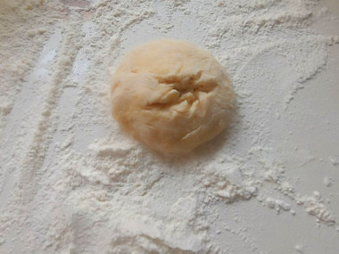 Заверните тесто в пищевую плёнку, чтобы не заветрилось и оставьте "отдохнуть" около 20 минут. Далее плёнку уберите, а тесто снова хорошо вымесите.