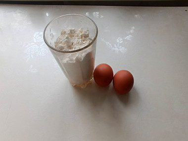 Пока варится бульон, подготовьте остальные ингредиенты. Возьмите яйцо, щепотку соли и неполный стакан муки, ее может уйти чуть больше или чуть меньше. О том, почему может потребоваться разное количество муки читайте в статье по ссылке в конце рецепта.