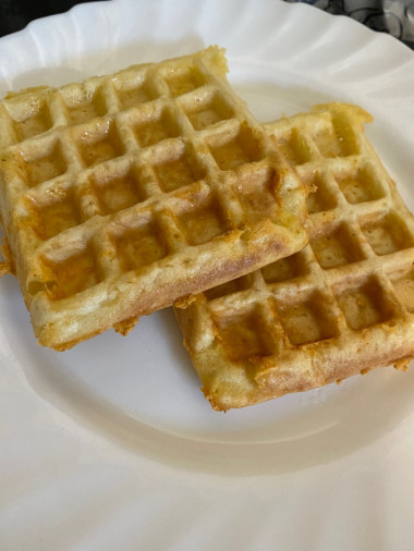 Подготовила продукты, отмерила и взвесила. Внимательно следую каждому шагу в рецепте. Мои старания оправдались, вафли получились с насыщенным сырным вкусом, пышные и в то же время хрустящими.