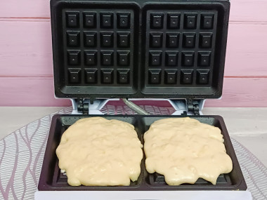 Важно! Учитывайте, что все вафельницы разные. Возможно, пластины вашего прибора нужно будет слегка смазать растительным маслом с высокой температурой дымления при выпекании первого изделия, во избежание его прилипания.
