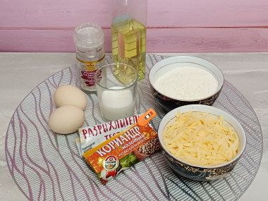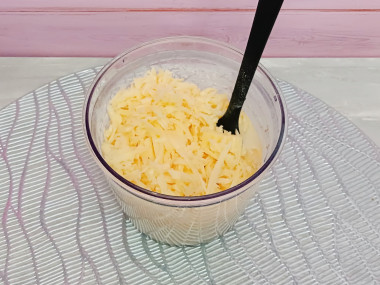 Тесто должно получиться достаточно густым. Оно должно не долго, но хорошо держать бороздку от венчика или ложки. Если тесто получилось жидковатым, то добавьте ещё сыра или немного муки.