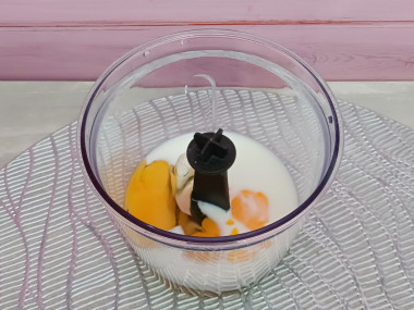 Взбейте смесь миксером до однородности и образования легких пузырьков.