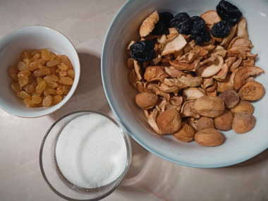 Как сварить компот из сухофруктов в кастрюле? Подготовьте все необходимые ингредиенты. Состав компота можете менять добавляя разный набор сухофруктов. Чем разнообразнее состав компота, тем насыщеннее и вкуснее он будет.