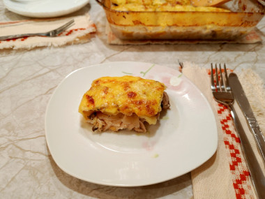 На вкус гратен получается очень вкусным. Сочная куриная грудка и картошка пропитываются ароматом грибов и лука. Украшает, а вместе с тем и насыщает его великолепная румяная сырная корочка.