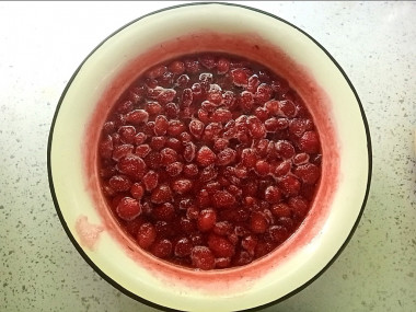 Засыпьте ягоды половиной (или чуть больше) сахара. Оставьте ягоды на несколько часов, чтобы они пустили сок.
