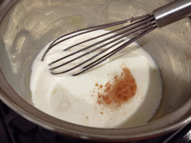 Влейте тонкой струйкой нехолодное молоко, одновременно активно перемешивая массу, чтобы разбить мучные комочки. Можно воспользоваться венчиком. На слабом огне при частом помешивании доведите соус до кипения и легкого загустения.