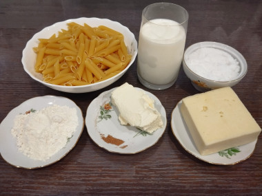 Как сделать макароны с сыром по американски? Подготовьте необходимые. Макароны подойдут любой формы, желательно, чтобы они были полые внутри (у меня перья). Можно взять два вида твердого сыра с разными вкусами либо моцареллу и твердый сыр (у меня моцарелла и маасдам).