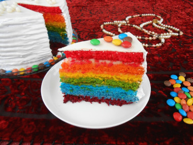 Отзыв 3: Понравился рецепт тортика Радуга. Тортик очень эффектно смотрится, оригинально украшен, при этом такое украшение делается несложно. Автор очень хорошо описывает процесс приготовления торта, дает много хороших советов, которые могут пригодиться для начинающих кулинаров. Торт готовится из простых продуктов, в ингредиентах нет ничего лишнего. Отличный вариант для детского торжества. Голосую за этот рецепт тортика!!!