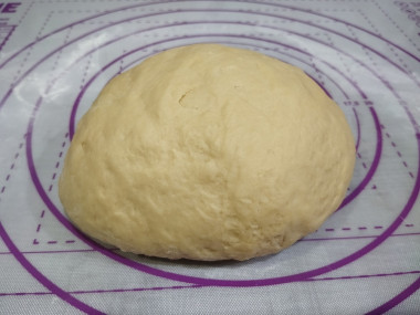 Замесите мягкое эластичное тесто, при необходимости подсыпая в него муку. Поначалу тесто будет липнуть к рукам, затем, по мере замешивания и добавления муки, липкость станет меньше. Но совсем забивать тесто мукой тоже не стоит. Лучше добавьте ее уже после, когда будете раскатывать кусочки теста на присыпанной мукой поверхности. Готовое тесто соберите в шар, накройте полотенцем и оставьте в тепле на 1 час для подъема.
