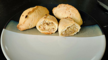 Тесто замешивается в 2 счета - для меня человека без опыта в выпечке это супер важно! Лепятся пирожки просто потому что тесто пластичное и мягкое. Начинка была картофель и курица - пропустила все на блендере и обжарила на сковороде. Выпекала 25 минут. Защип надо делать более щедро и плотно - возможно даже вилкой - так как при нагреве тесто начинает течь и швы расходятся.