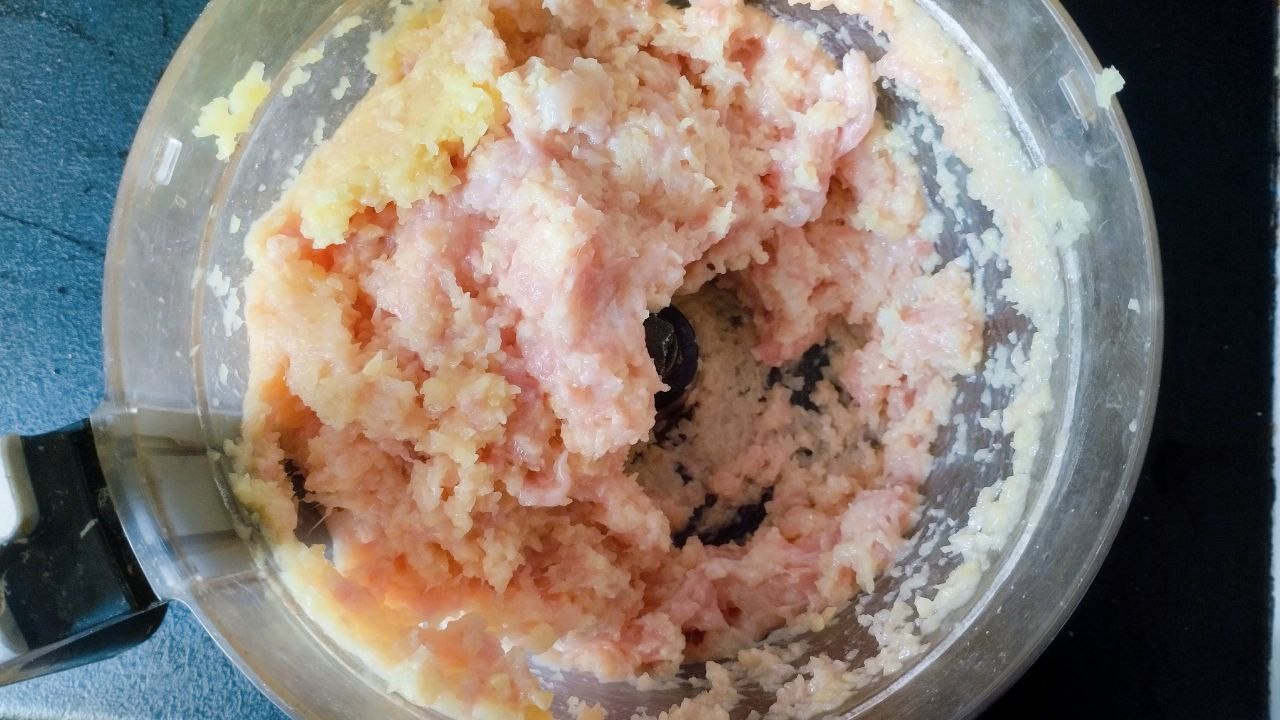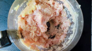 Все хорошо перемешайте. Помимо указанных ингредиентов можете добавить в фарш мелко порезанную луковицу.