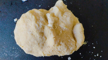 Влейте кефирную смесь в мучную крошку и замесите однородное мягкое тесто. Из-за большого количества сливочного масла тесто получается очень податливым и эластичным.