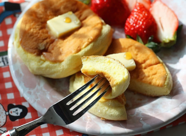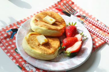 Панкейк — кулинарное изделие, представляющее собой толстый пышный блинчик, по вкусу напоминающий бисквитный корж. На русские оладьи они почти совсем не похожи. А японские панкейки еще больше отличаются от наших оладий. Они настолько нежные и воздушные, что больше похожи именно на суфле. Имейте это в виду, когда соберетесь готовить. Вполне может выйти так, что вы настроитесь на блины или оладьи, а в итоге получите совсем другое блюдо!