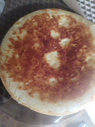 Накройте сковороду крышкой, сделайте огонь минимальным. Готовьте пирог от 30 до 40 минут. Готовность определите зубочисткой - если ее воткнуть и потом вынуть из пирога, то на ней не должно остаться кусочков сырого теста.