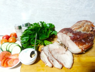 Приготовила свиную рульку варёную в луковой шелухе. Чтобы избежать окрашивания кастрюли решила воспользоваться мультиваркой. Сначала в воде растворила соль, положила её столько, чтобы было немного солонее, чем при обычной варке мяса. Затем в солёную воду опустила промытую луковую шелуху, довела до кипения, добавила лавровый лист и перец горошком, положила свиную рульку. Готовила в режиме "Тушение" 2 часа, хотелось, чтобы свиная шкурка была помягче. Готовой рульке дала полностью остыть в рассоле. Затем обсушила её салфеткой, натерла измельчённым чесноком, положила в пакет, плотно его завязала и отправила в холодильник. Получилось очень вкусно, аппетитно и красиво! И для мясной нарезки и для сытных бутербродов- отличный рецепт натурального продукта! Рекомендую приготовить. Не забудьте подать к этому мясу горчицу)) Спасибо за рецепт, Юлия!