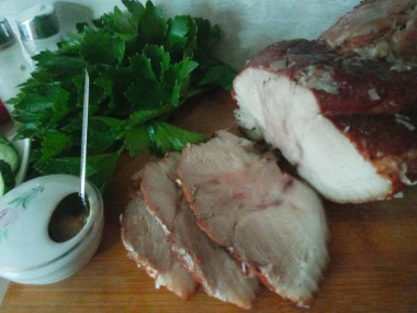 Отзыв 1: Очень красиво. Рулька нарезана, мы можем видим разрез. Фон подобран правильно. Зелень дополоняет композицию.