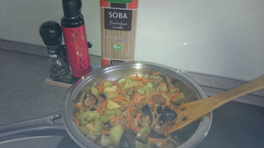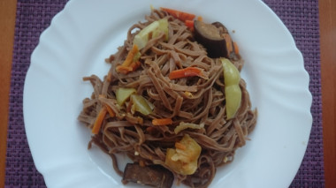 Всей семьей любим собу, я готовлю ее часто, с различными овощами, мясом, грибами. Баклажаны в данном блюде тоже похожи по вкусу на грибы, очень вкусно!