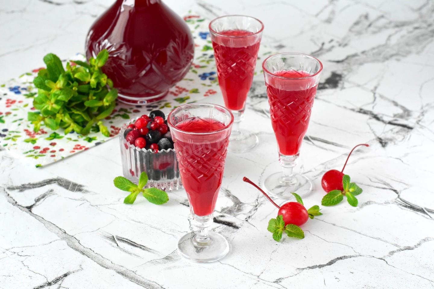 Цвет наливки напрямую зависит от выбранных ягод: вишня дает рубиновый, черная смородина — темно-фиолетовый, а клубника — солнечно-янтарный оттенок.