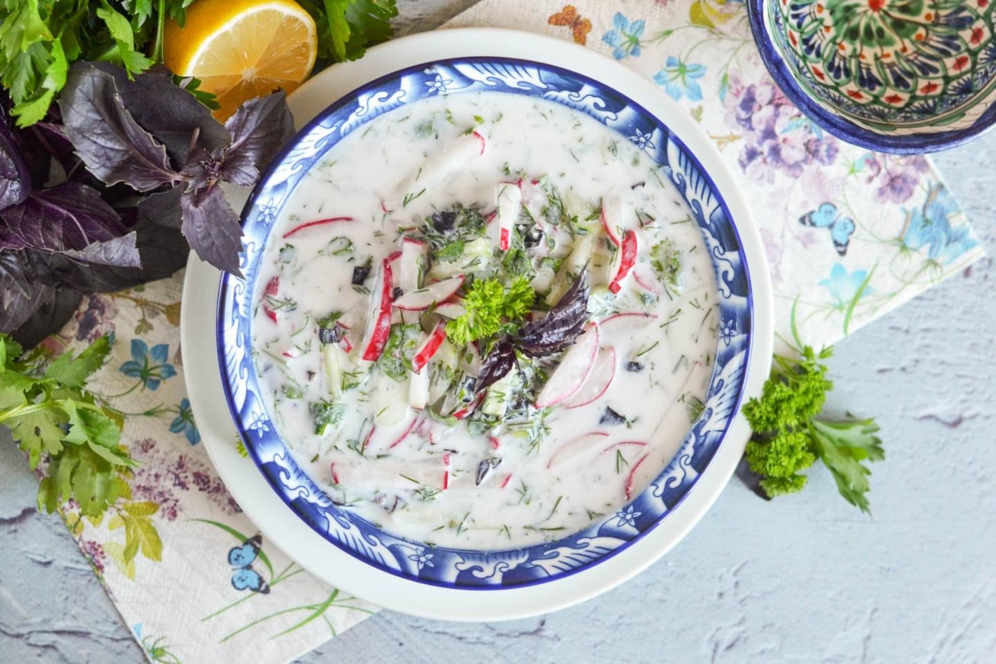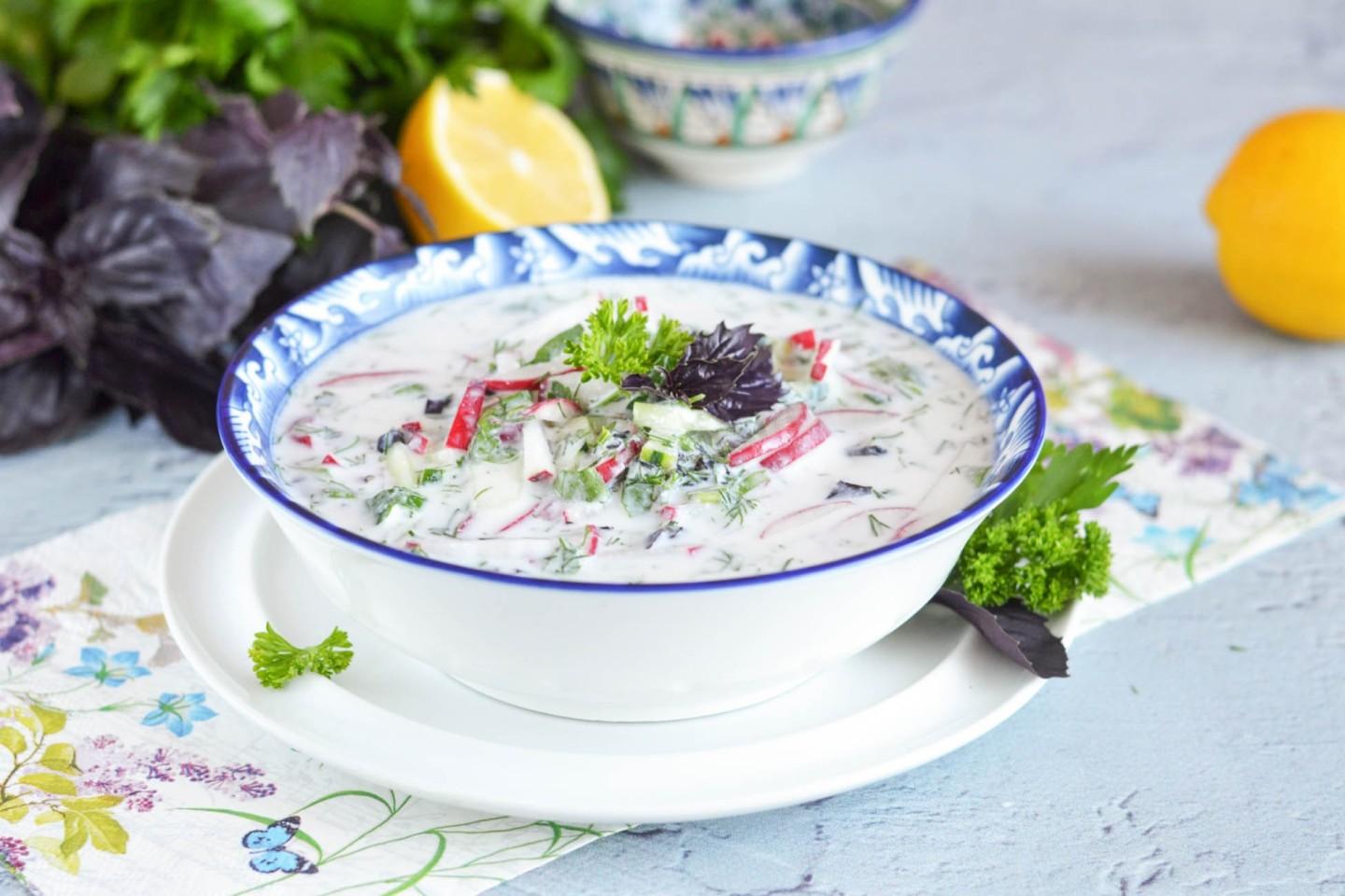 Катык замените на кефир, айран, тан или натуральный йогурт. Редиску — на редьку, дайкон или огурец. Зелень можно менять по сезону: мята, тархун, базилик. Лимонный сок — на лайм или уксус для другой кислинки.