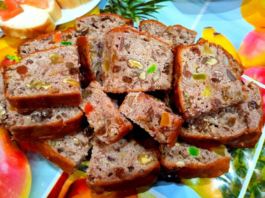 Для нашей семьи стало традицией печь рождественскую выпечку с алкоголем. Каждый год пеку что-то новое, пекла штоллены, кексы, пироги. В этом году выбрала рецепт "Рождественский пирог с сухофруктами и орехами "на пробу. Подготовку начала перед Новым годом. В качестве начинки взяла грецкие орехи, кешью, изюм и ананасовые цукаты. Залила их виски, плотно закрыла крышкой и поставила в холодильник на двое суток. Периодически переворачивала контейнер, чтобы жидкость полностью впиталась. В итоге орехи и сухофрукты напитались виски и сильно разбухли. Когда замесила тесто оказалось, что его количество практически равно количеству начинки. Пирог отлеживался в холодильнике неделю. Мне кажется, это оптимальное время дли пропитки. Пирог получился просто великолепным! Сам по себе он суховат, но наличие влажной начинки сделало его сочным и мягким. Даже орехи стали почти мягкими. Это очень вкусно. Заметила, что сразу после выпечки у пирога был резкий привкус виски (крошку попробовала), а спустя неделю вкус стал гораздо мягче. Орехи и цукаты очень вкусные, вообще весь пирог сплошное удовольствие. Надо было делать пару штук, а то все сразу съели) Спасибо за рецепт!