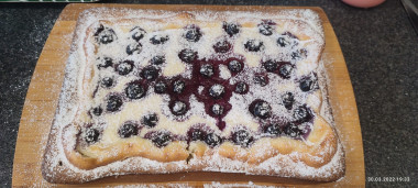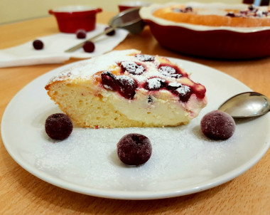 Вишня закончилась))) Сделала со смородиной. Вкус в целом нереальный. Очень воздушная ватрушка получилась. Взбивала в тестомешалке и блендером... возможно поэтому масса вышла воздушная. Вообщем, настолько было вкусно, что мы за 5 мин съели вчетвером целый пирог)) Спасибо за рецепт Ватрушка с вишней. Сейчас поставила в духовой шкаф вторую форму))