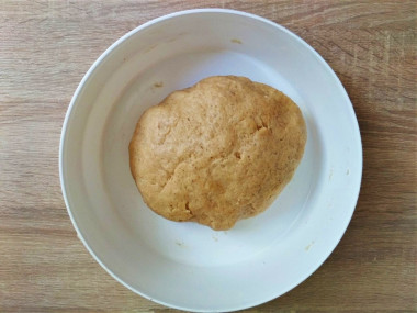 Собираем тесто в однородный комок, который затем кладем в целлофановый пакет и убираем на один час в холодильник.