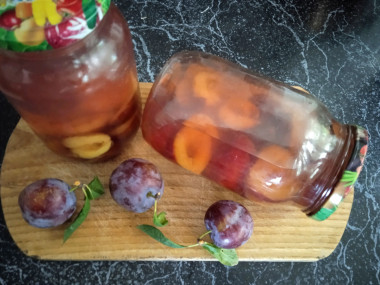 Сделала компот из сливы на зиму на 1 литровую банку. Ранее готовила компоты лишь в трёх литровых банках. Сливы взяла обычные, но вкусные и сочные. Помыла и удалила косточки. Сложила половинки слив в стерильные литровые банки, залила кипятком и оставила настаиваться. Затем слила воду, добавила сахарный песок и закипятила. Никаких ароматизаторов я не добавляла. Залила сироп в банки со сливами и закатала. Отличный рецепт компота на зиму. Несложный и очень вкусный, кстати. Сироп после закипания я попробовала, сахара в меру, очень насыщенный, сливовый, ароматный и сладкий с лёгкой кислинкой, но не приторный. Литрушки компота из слив очень симпатично смотрятся. И компот можно выпить, и сливки скушать)