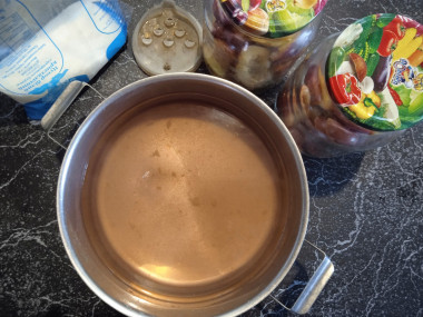 С помощью специальной крышки с дырочками слейте всю воду в кастрюлю, оставив сливы в банке.