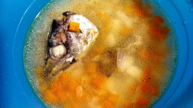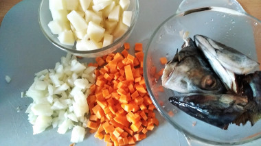 Сегодня у меня рыбный день, и одно из блюд- по рецепту рыбный суп из скумбрии свежемороженой. Скумбрию немного разморозила, почистила, тушки убрала для других рецептов, а на суп пойдут хвостики и головы, так как вареную рыбу я не жалую, а вот рыбный бульон люблю. Приготовила овощи- морковку, лук, картошку, все нарезала небольшими кубиками, припустила в кастрюле с ложкой растительного масла, положила туда же рыбу, залила горячей водой, добавила соль, перец и лаврушку, варила до готовности минут 20. К супу я подала сухарики из белого хлеба. Этот рыбный суп из скумбрии идеальный вариант для тех, кто придерживается диеты или правильного питания, отличный вариант для детского питания, низкокалорийный, легкий и ароматный. Спасибо автору за рецепт.
